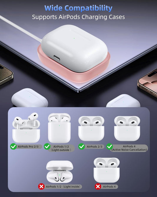 For Airpod Charger, Designed Wireless Charger for Airpods 4(Anc)/3Rd/2Nd Gen, for New Airpod Pro 3 (2025)/ 2Nd Gen, Wireless Earbuds, Slim & Compact for Travel Home Office, Pink